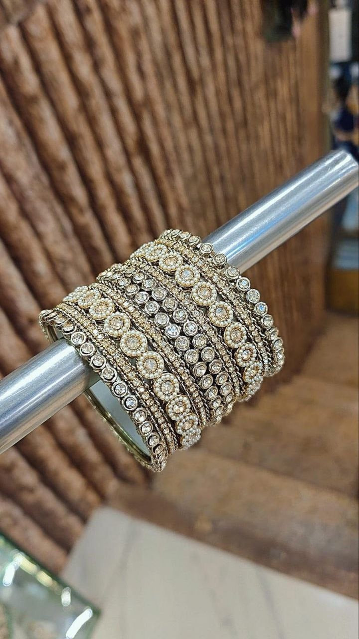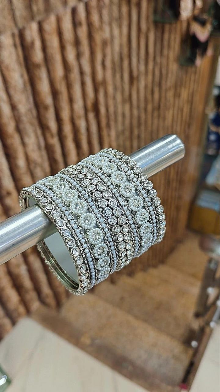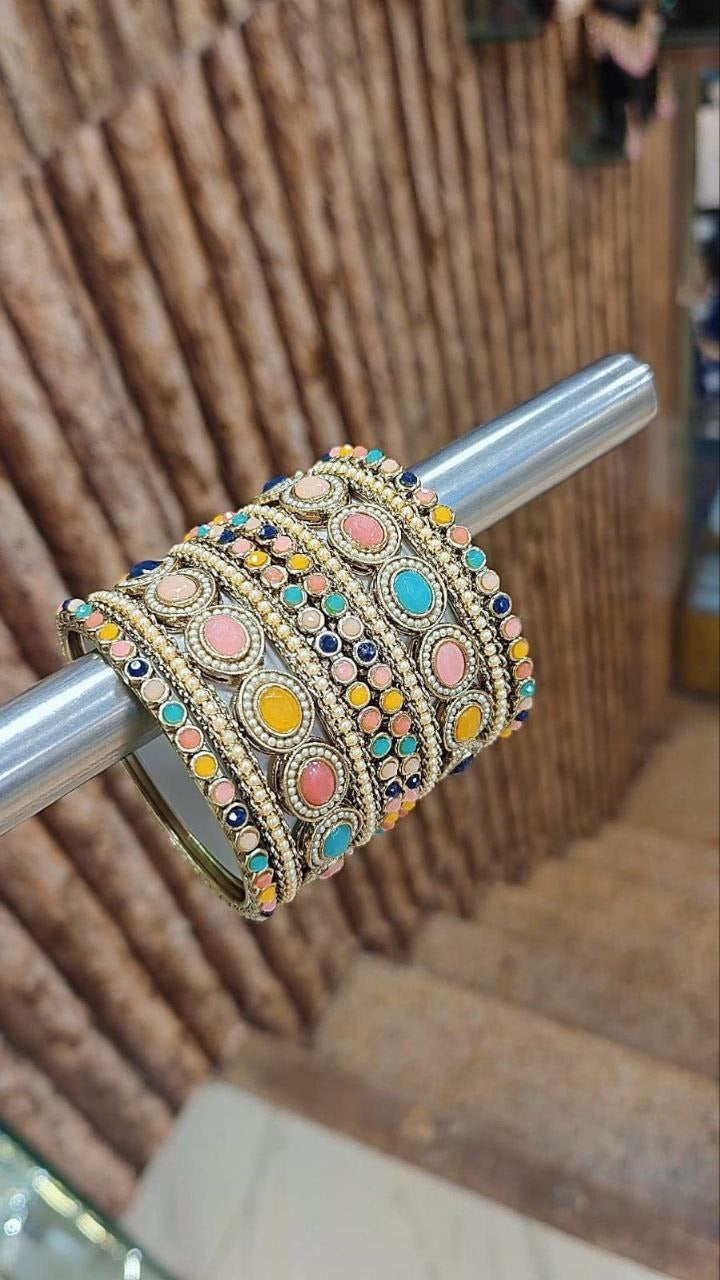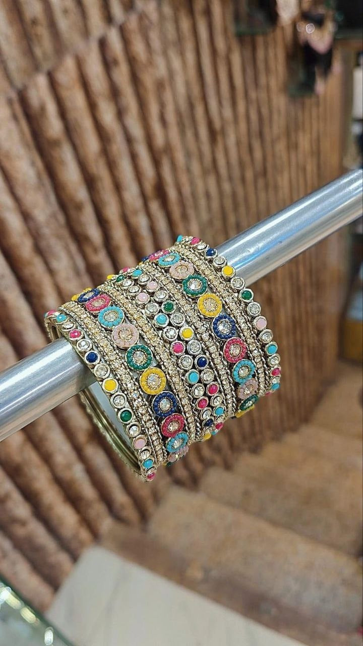 Artisanal Stone Set Bangles with Kundan Work Handcrafted Festive and Wedding Jewelry