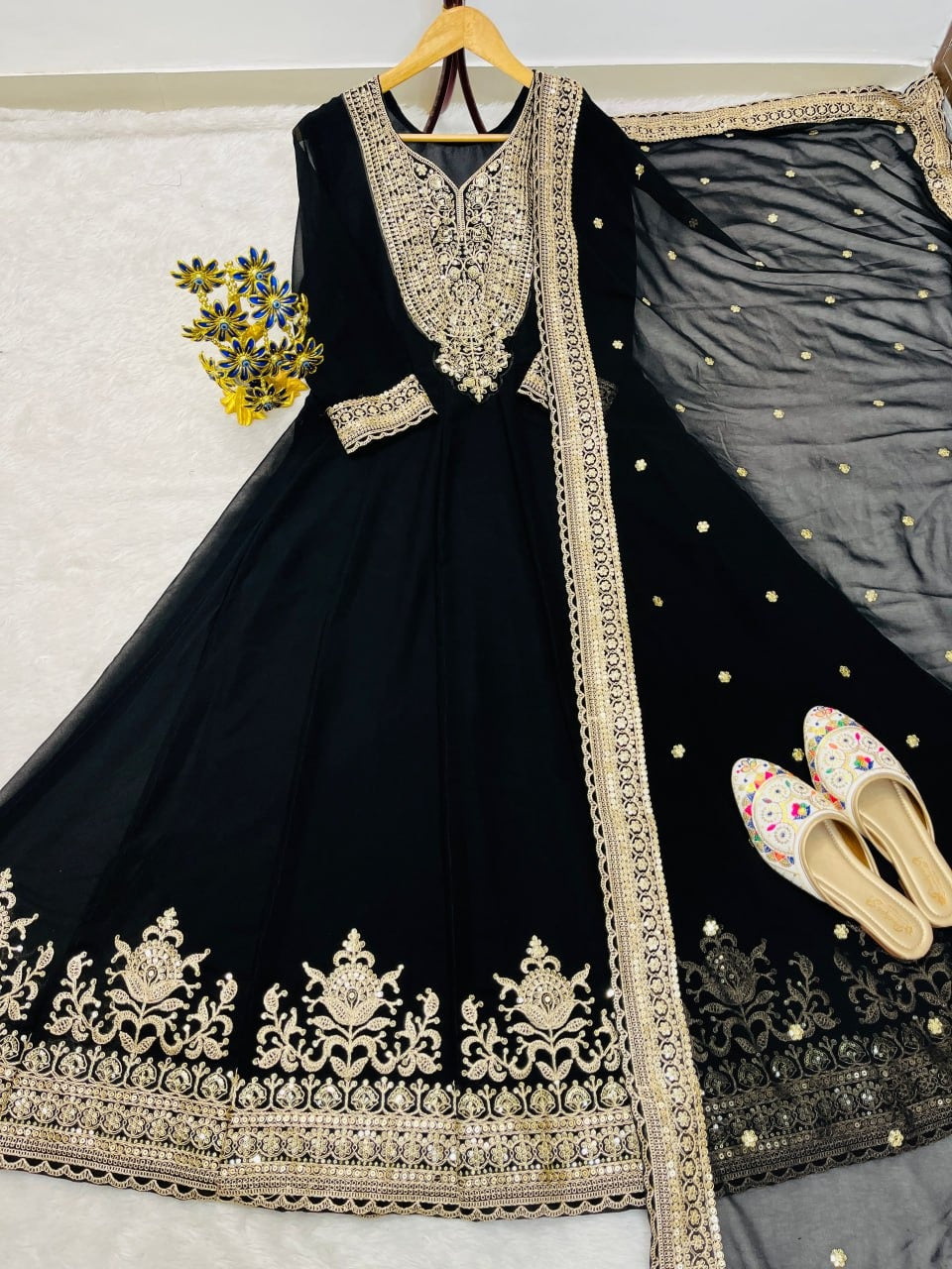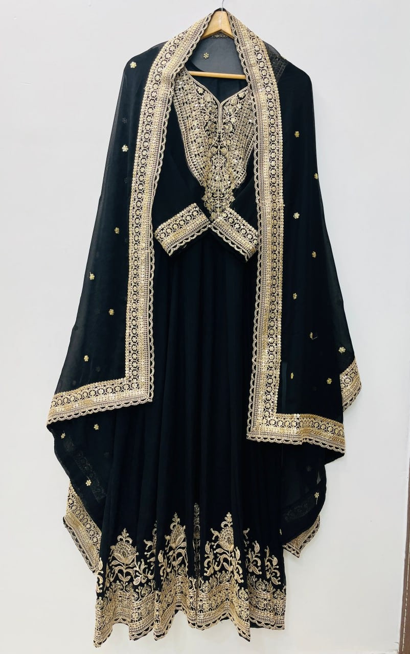 PREMIUM QUALITY EMBROIDERED GOWN SET Elegant and sophisticated gown set in luxurious Blooming Faux Georgette featuring heavy embroidery and sequence...
