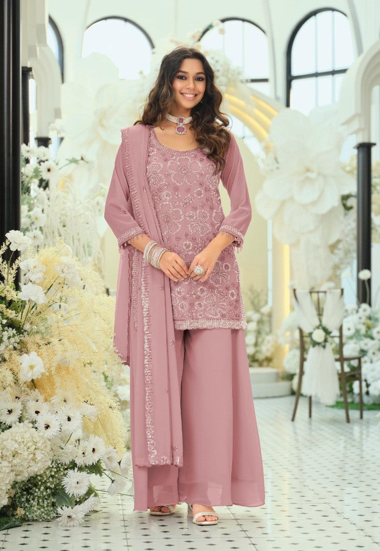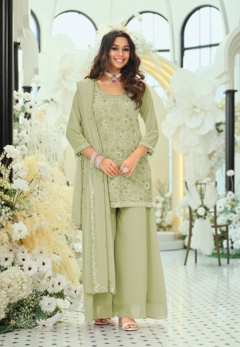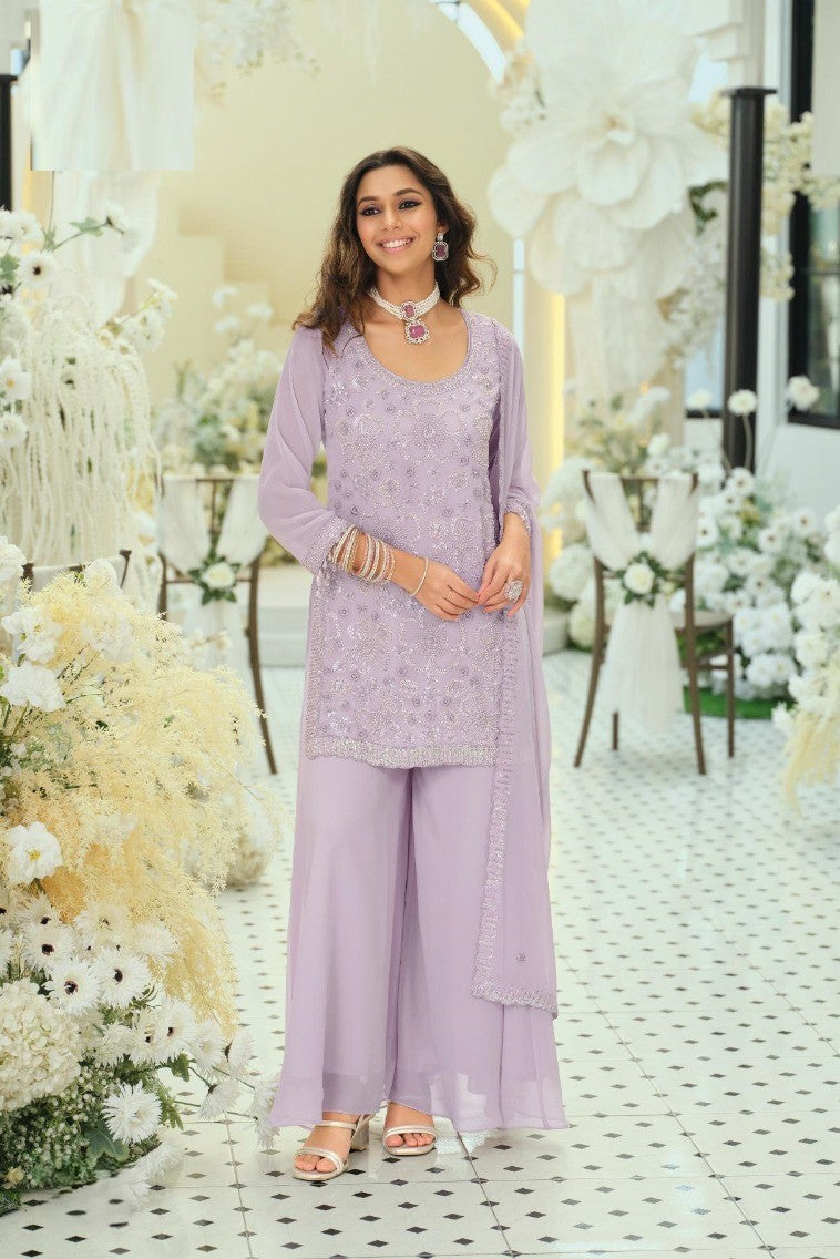 Georgette Ensemble with Beads Work | Top, Dupatta & Palazzo Set