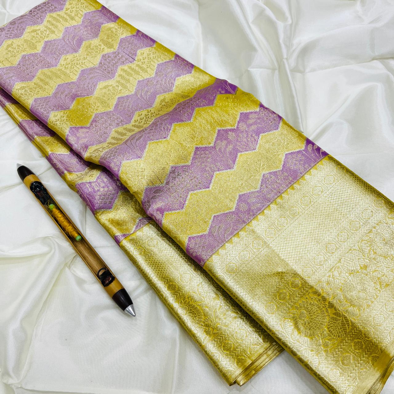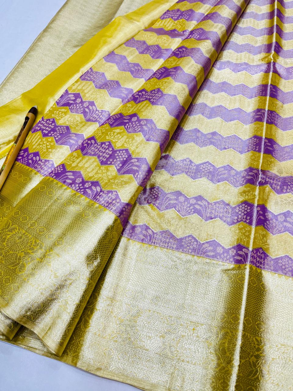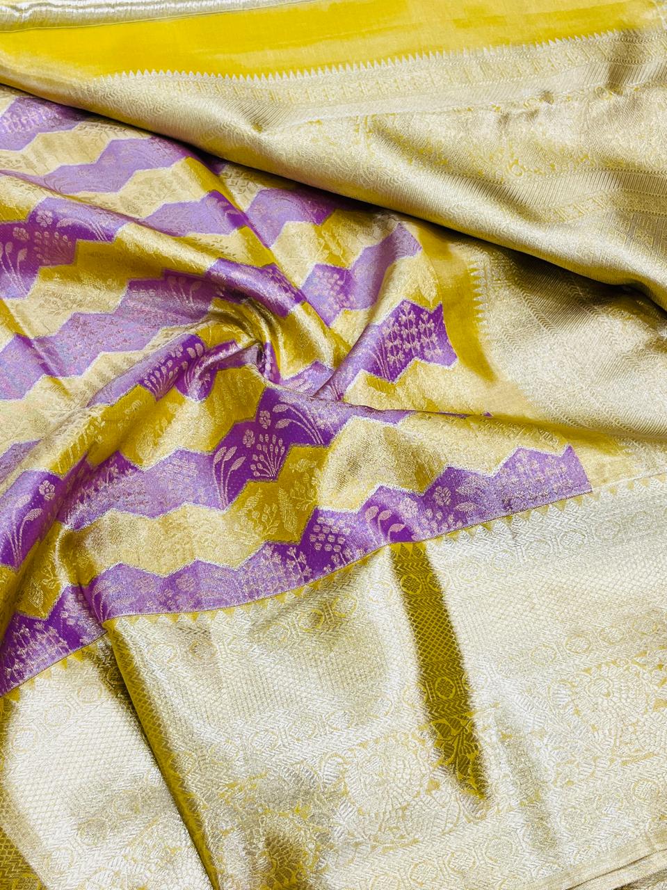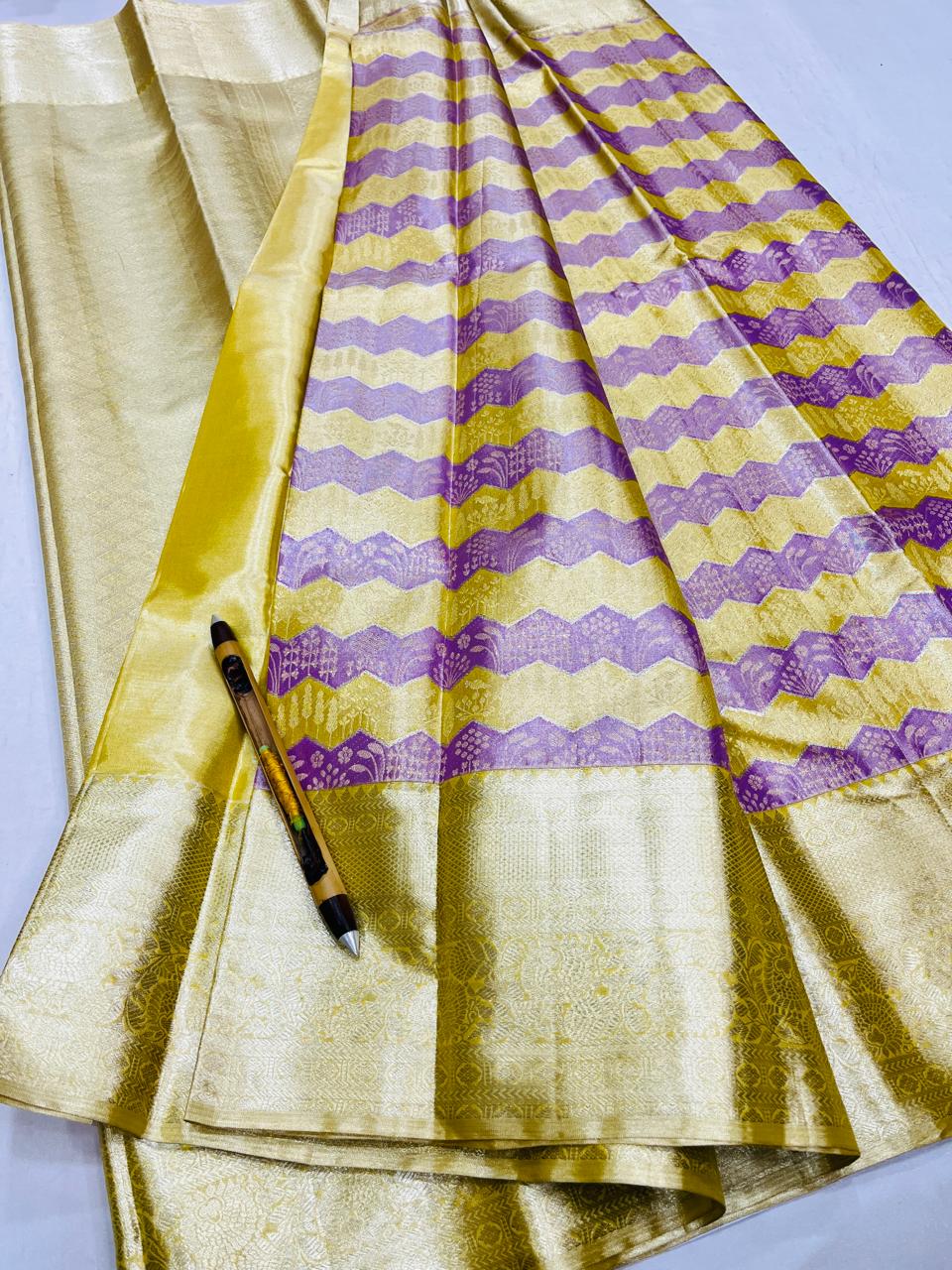 Kanchipuram Handloom Pure Silk Unique Tissue 3 Card Bridal Silk Mark Certified Saree