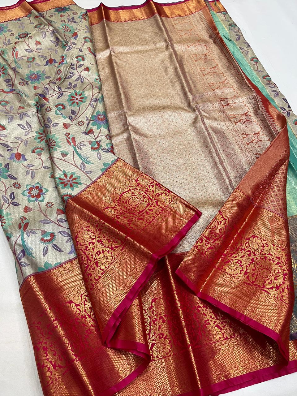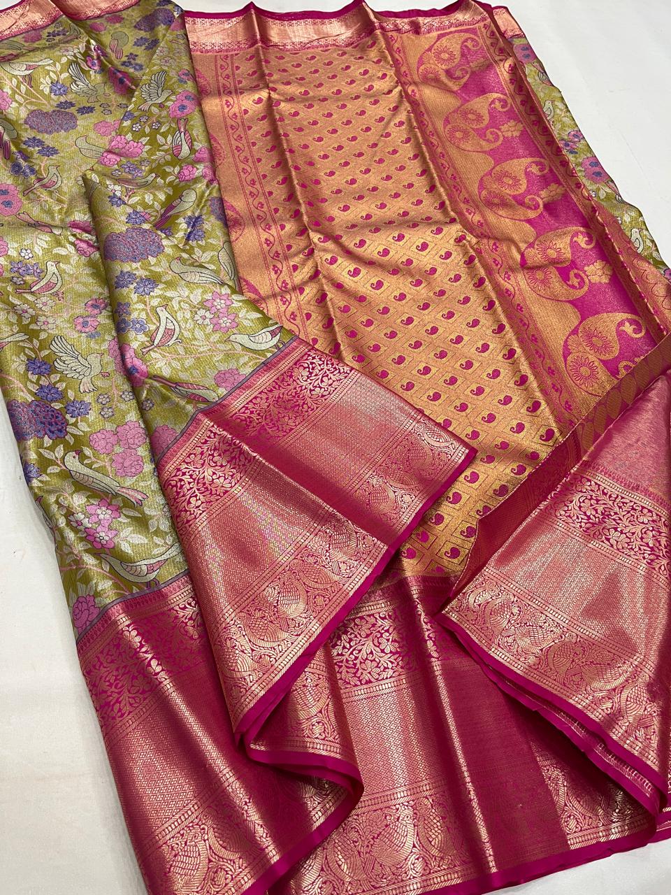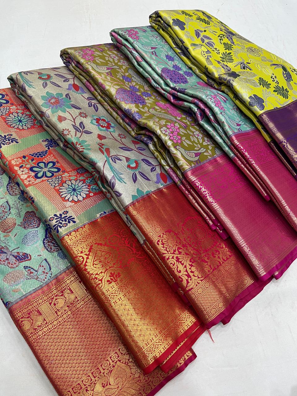 Affordable Luxury Kanchipuram Soft Silk Bridal 4 Cards Tissue Silk Saree