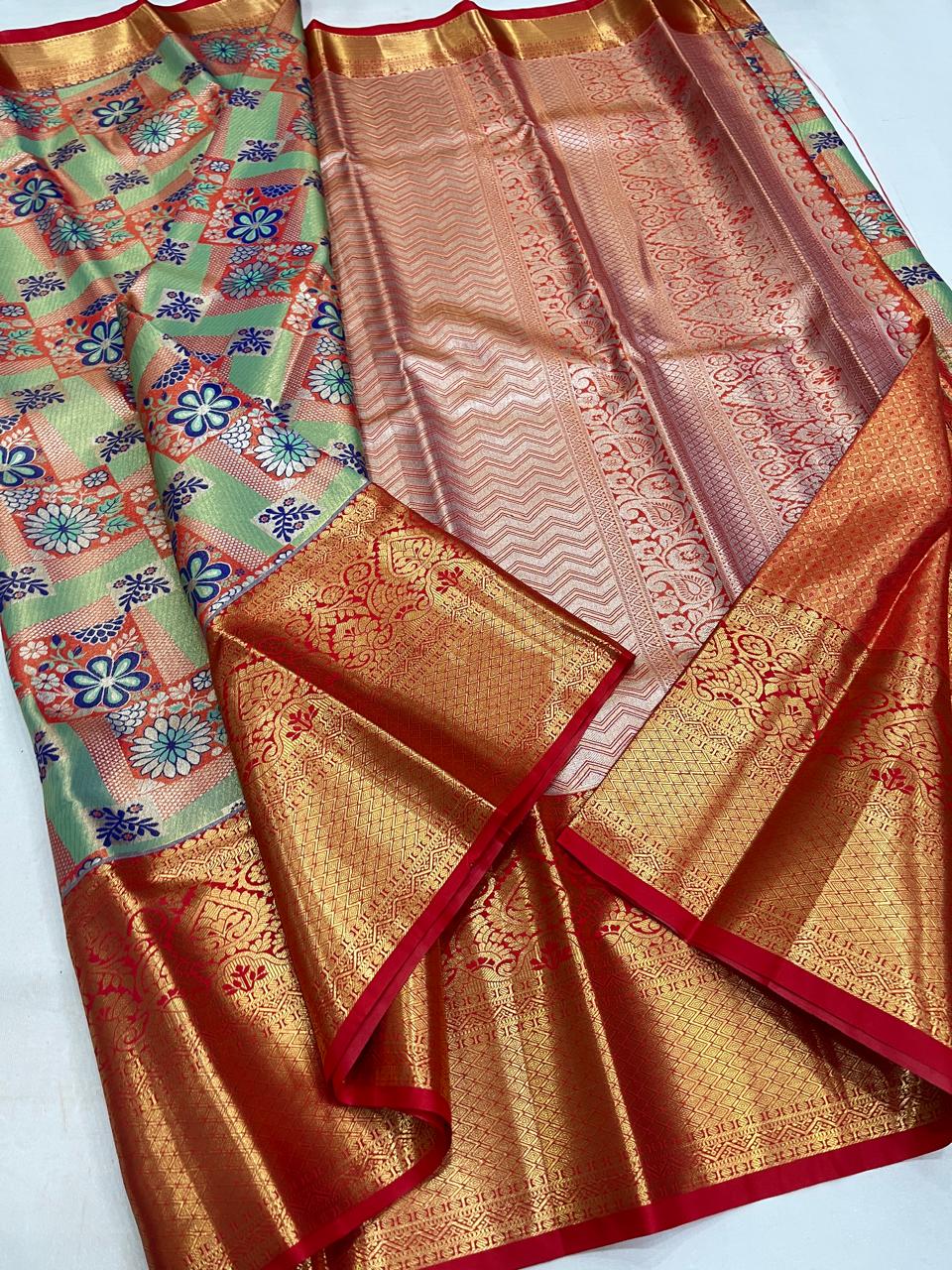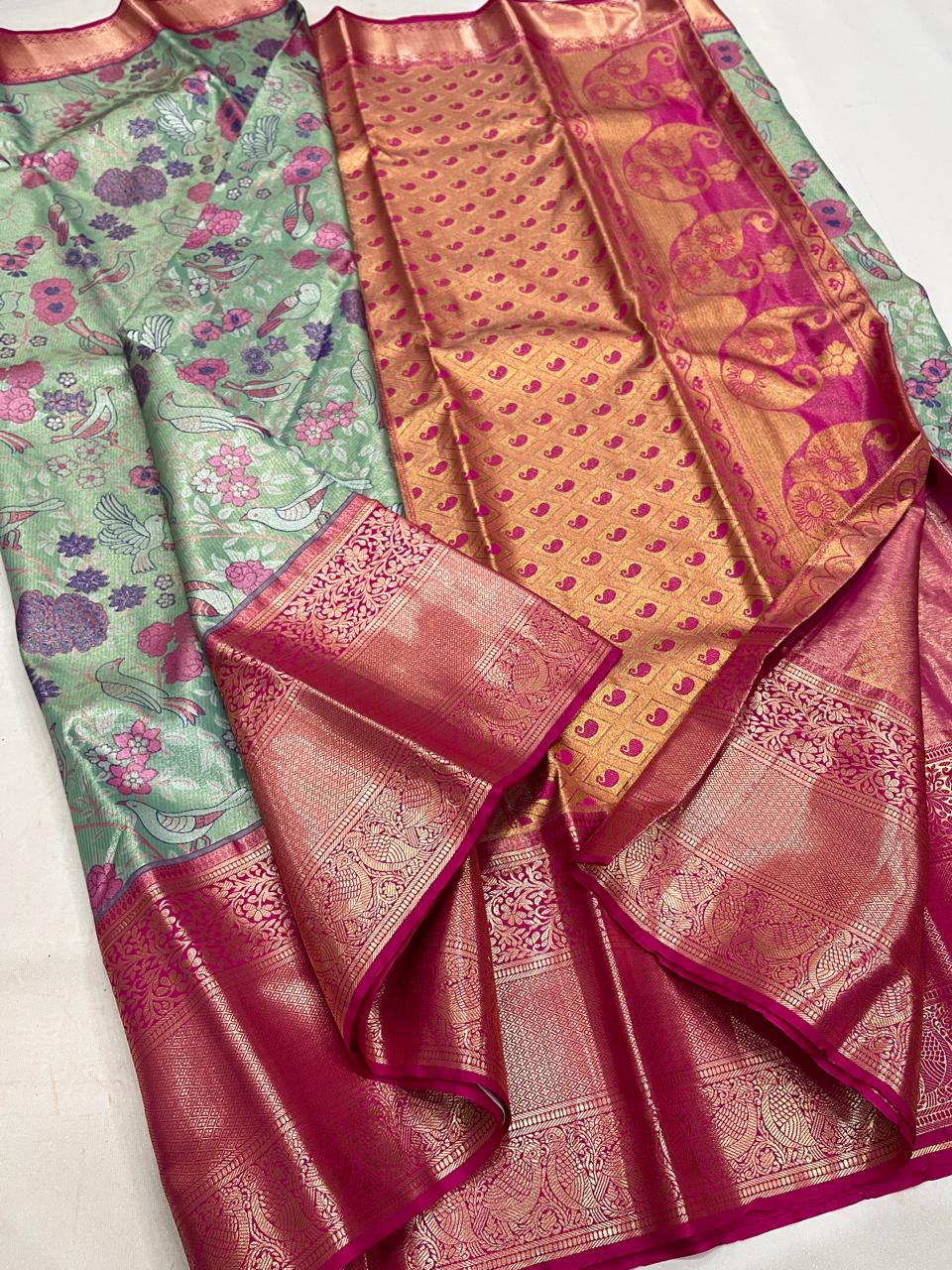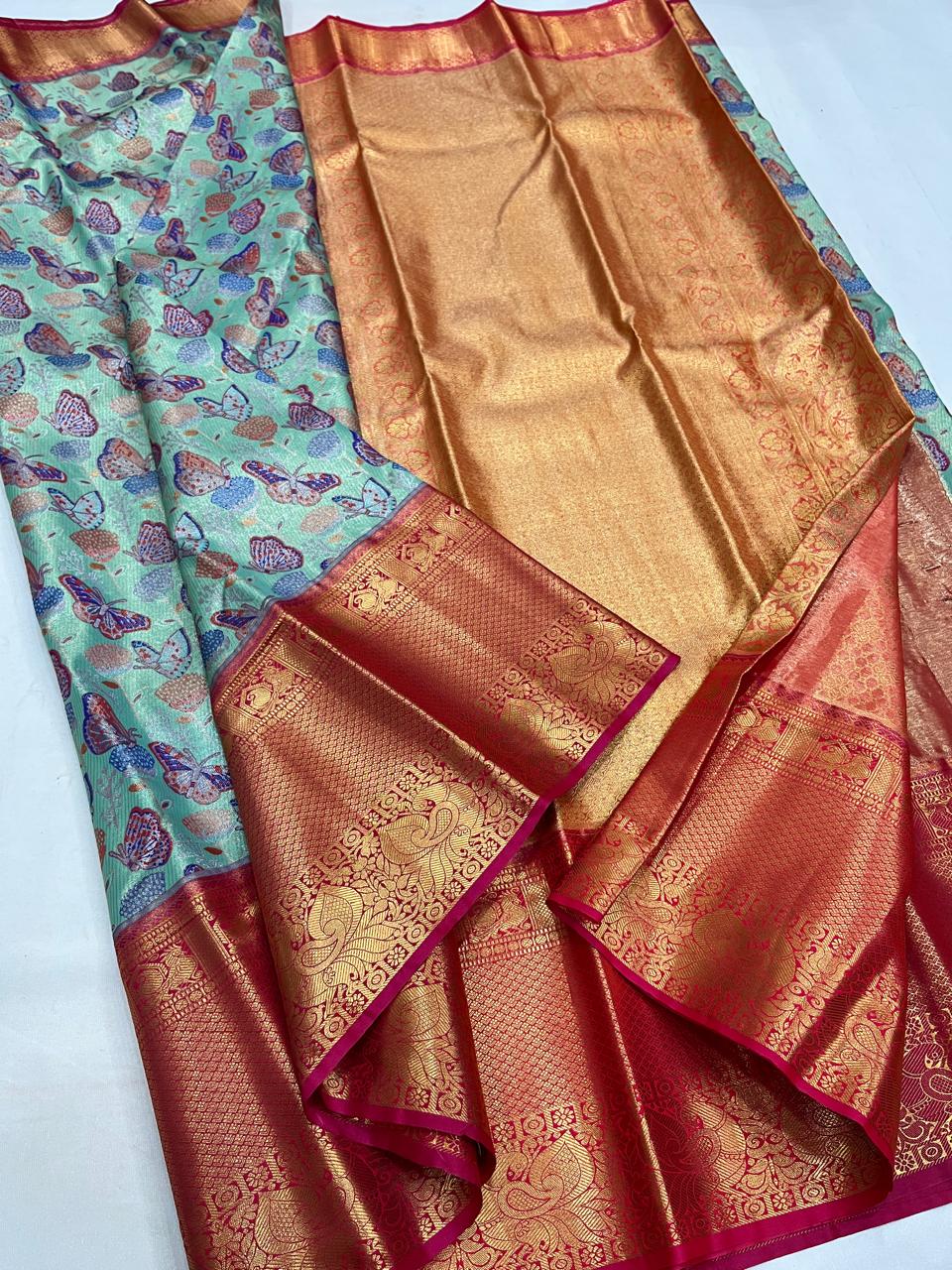 Affordable Luxury Kanchipuram Soft Silk Bridal 4 Cards Tissue Silk Saree