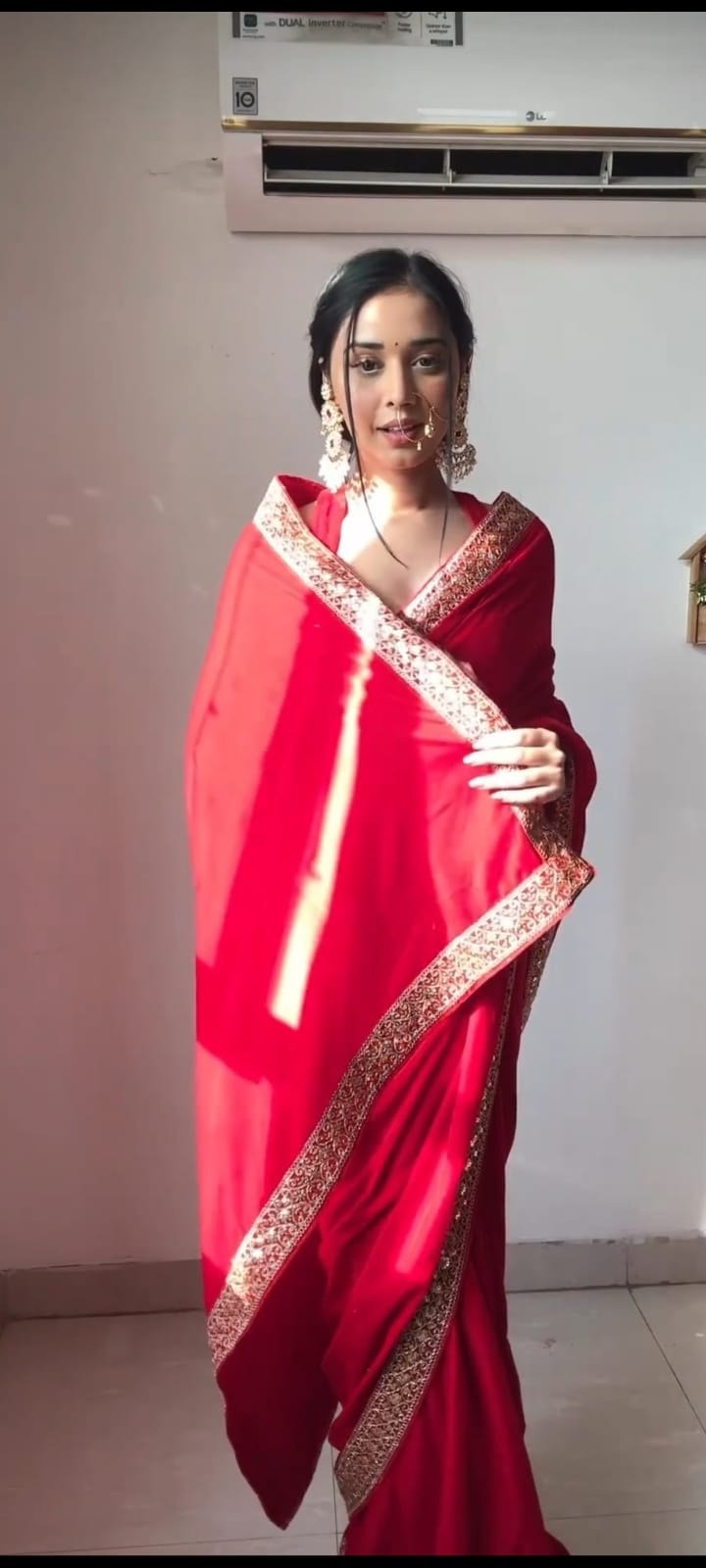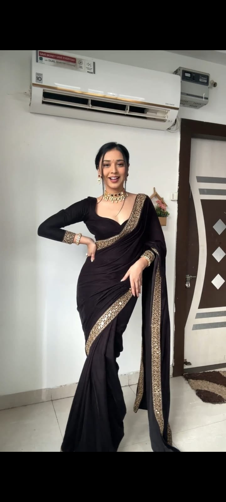 Luxurious premium 9000 velvet saree with heavy work lace border, ready to wear. Includes unstitched 1m velvet blouse with extra...