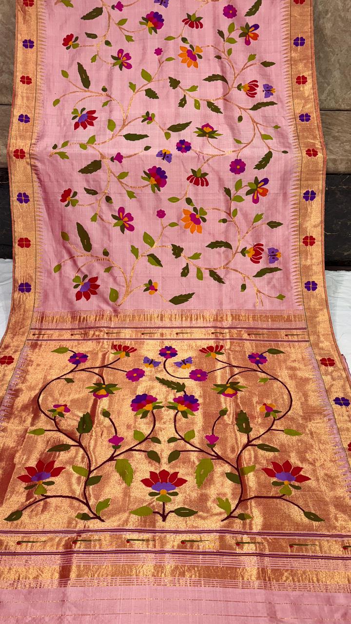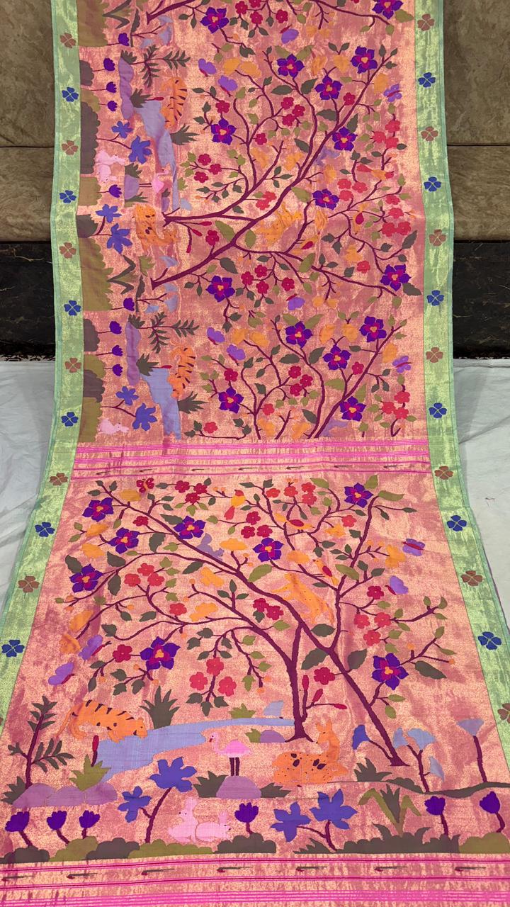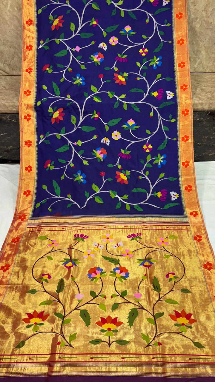 Premium Bridal Pure Silk Brocade Paithani Saree with Golden Zari