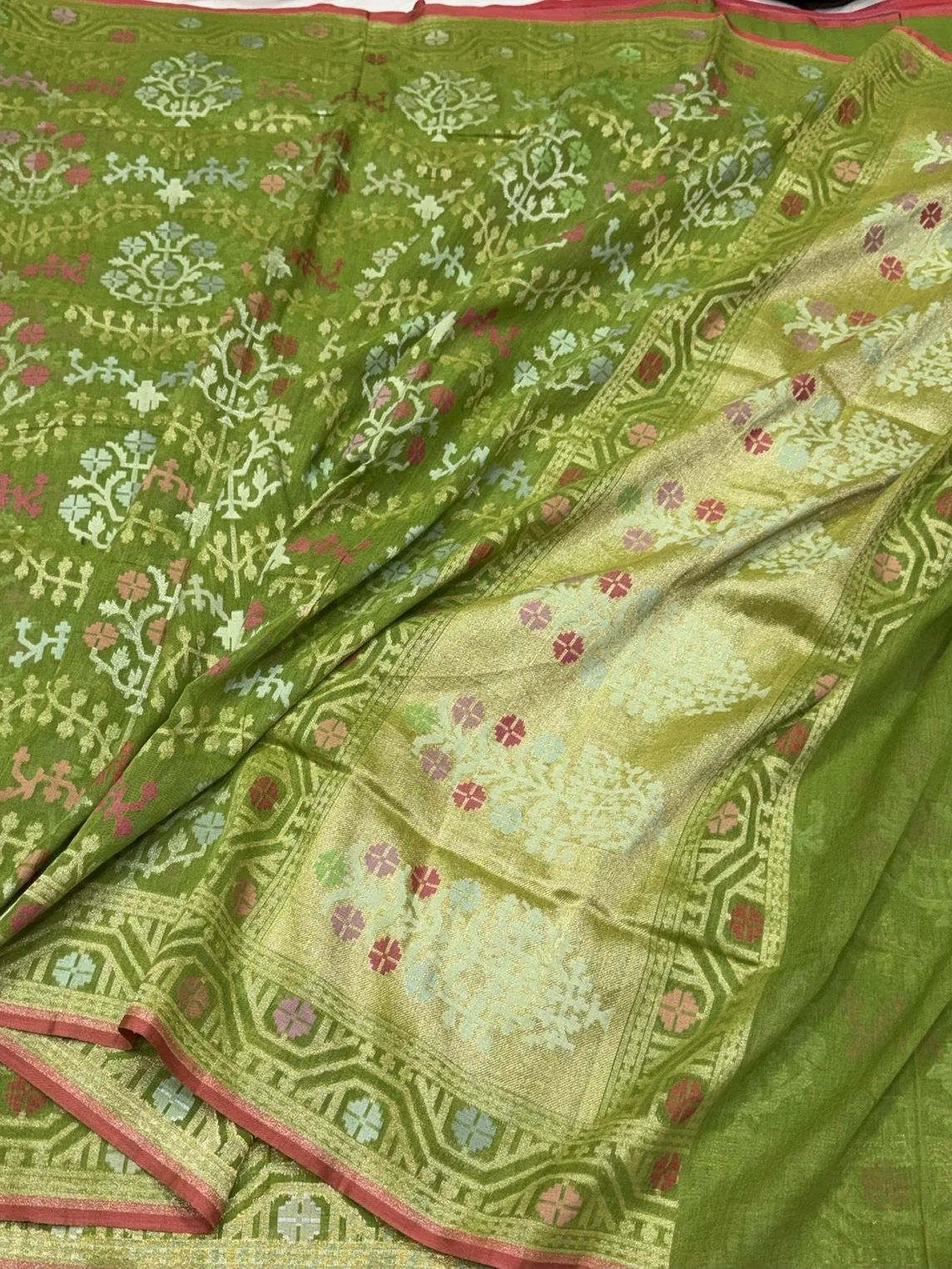 Premium Green Pure Muslin Cotton Jamdani Saree with Timeless Design