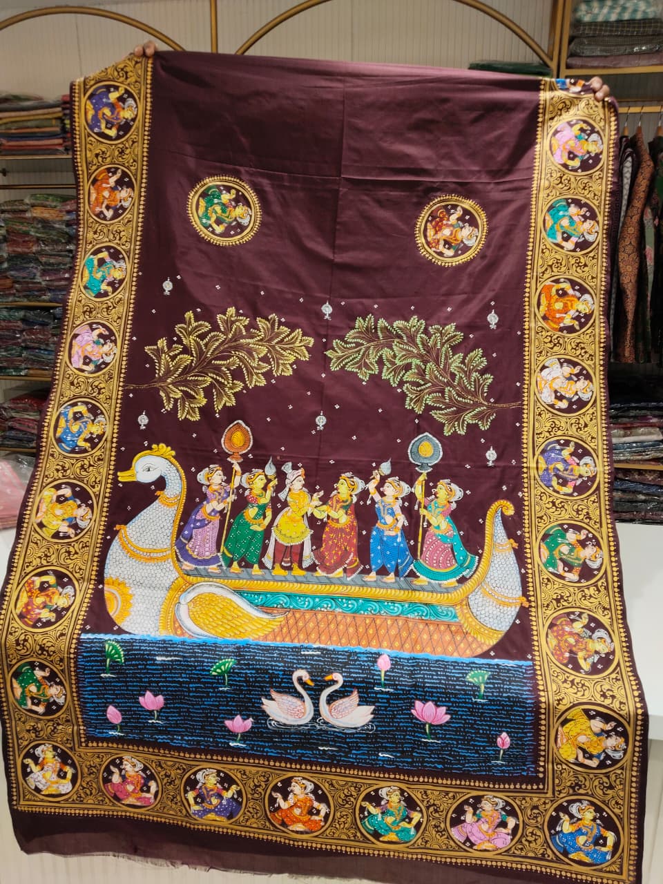 Pure Silk Maroon Boita Bandana Hand-Painted Pattachitra Saree