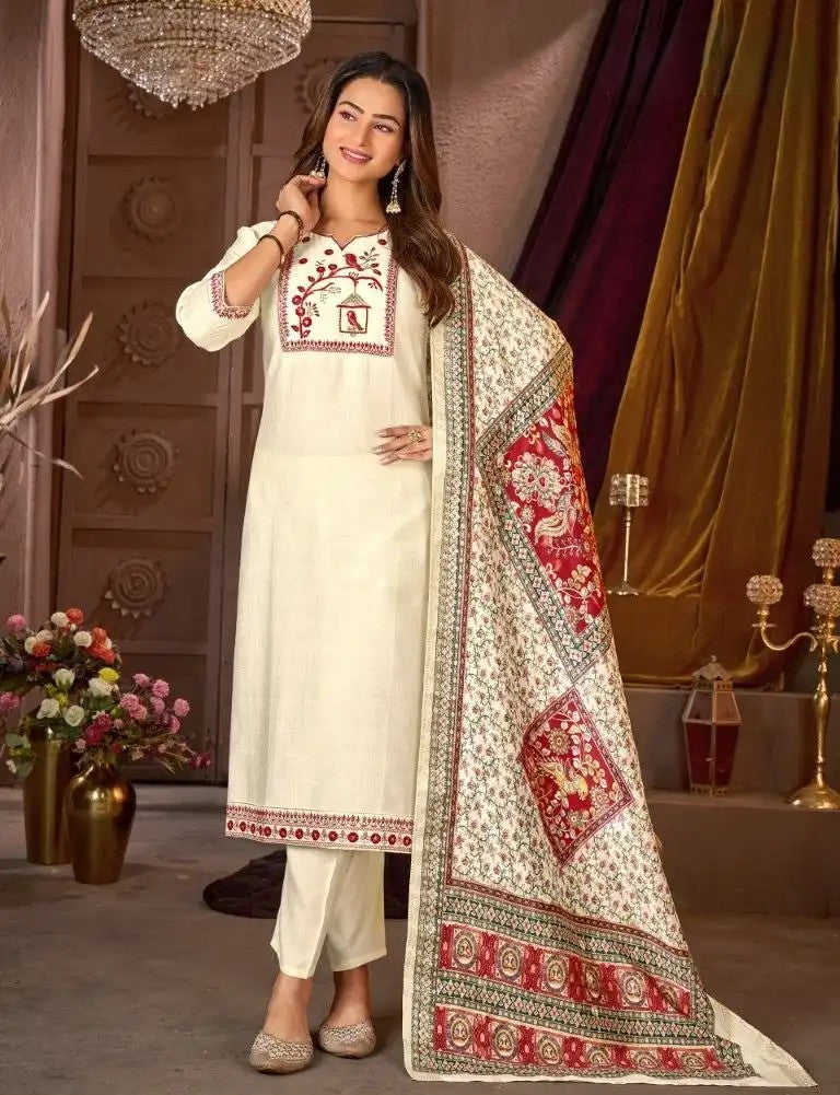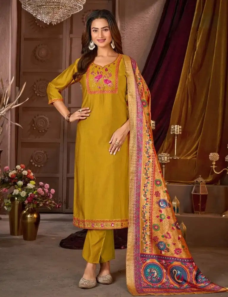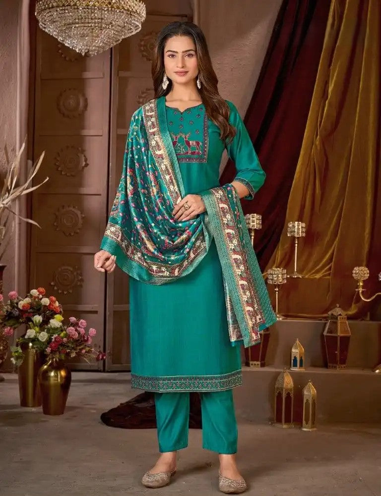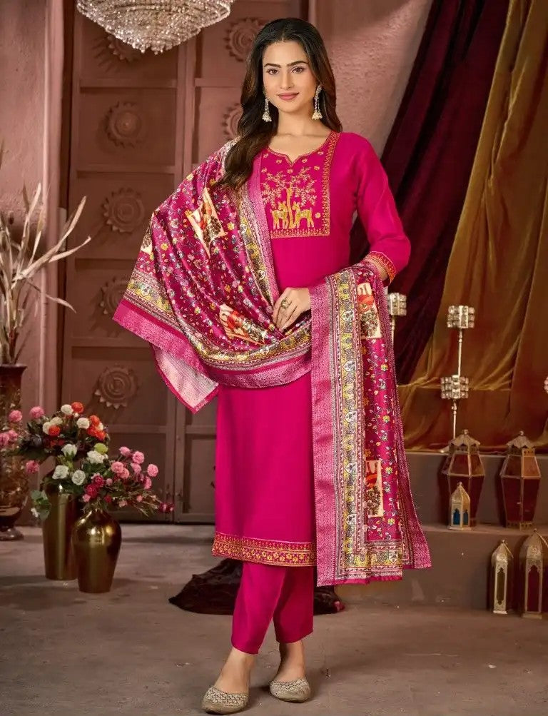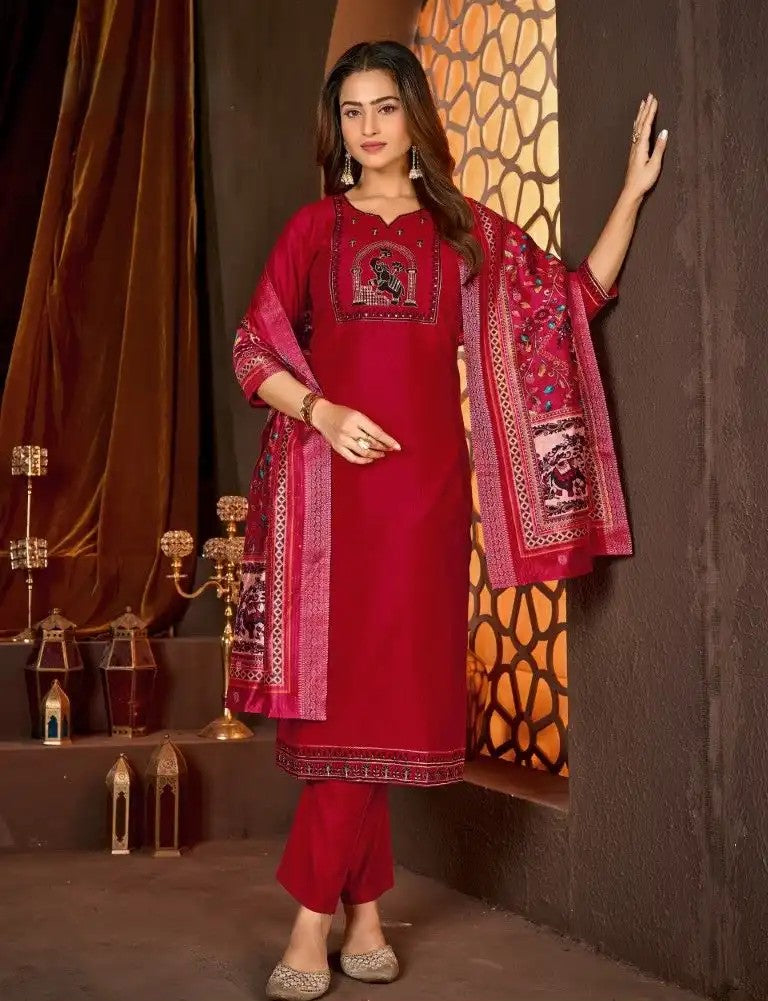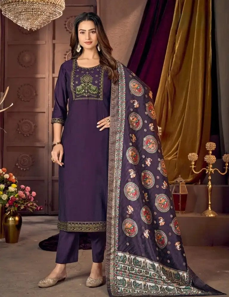 Vertical Silk Kurti Pant Dupatta Set with Heavy Embroidery Sequence Work